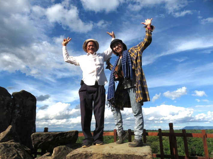 前夜はものすごいスコールが降り続きましたが、晴れてヨカッター!と大声で叫びたい。インド的宇宙観よりメール山をモデルに造られたと云われる建造物。北方にはダムレーク山脈が、南西にはプノンクーレンが眺められる絶景です。サンセットも美しいだろうな~。